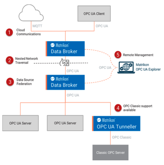 - Nested network traversal: seamless, secure OPC UA connectivity across firewalls and DMZs using “inside-out” connectivity (UA Reverse Connect).