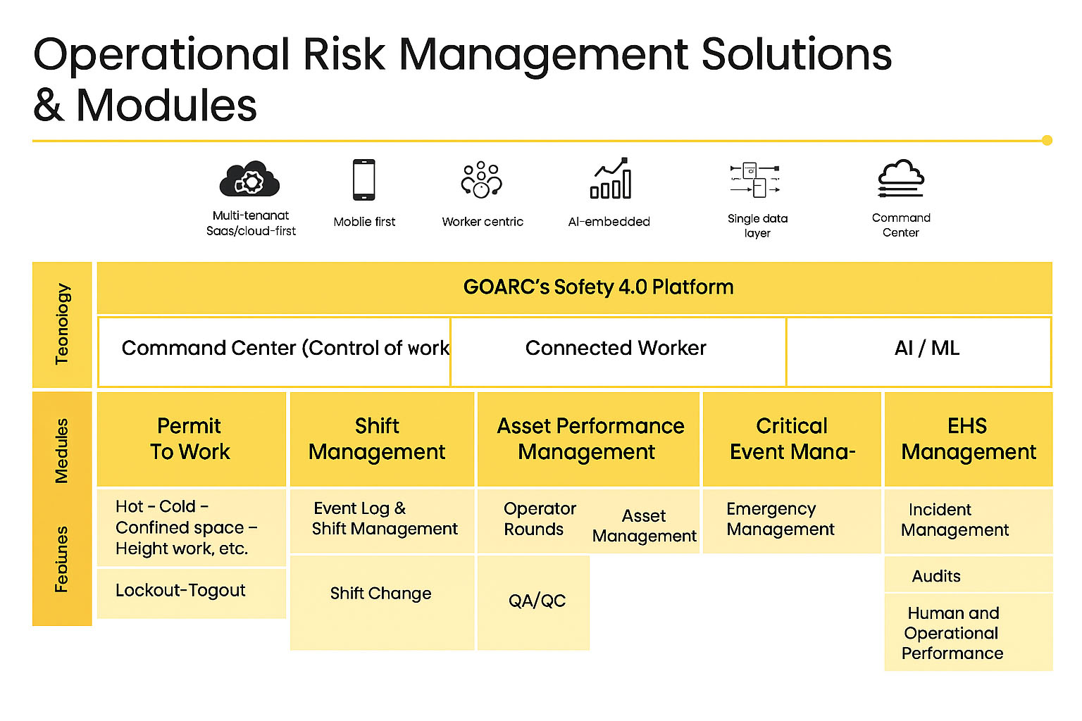 GOARC SaaS safety 4.0 platform is a AI-Driven Platform with a realtime view of a plant operation reality with visualization and dynamic work activities and risk management.
